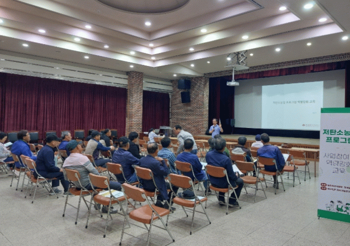이번 교육에는 저탄소 농업 프로그램 시범사업에 참여한 80여 명의 농가가 참석했으며, 논에서의 메탄가스 감축 실천 방안을 중심으로 진행됐다.