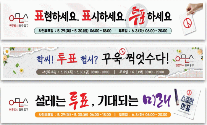 동구는 시민들의 적극적인 선거 참여를 위해 이달 12일부터 6월 3일까지를 선거 홍보 기간으로 지정하고, 지역 자생단체와 유관기관, 동구 SNS 서포터즈, 마을활동가 등과 함께 투표 참여 홍보활동을 온·오프라인에서 펼칠 계획이다.