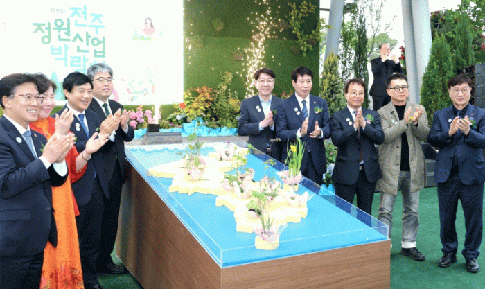 전주시는 9일 전주월드컵광장 내 박람회장 메인무대에서 우범기 전주시장과 남관우 전주시의회 의장, 이성윤 국회의원, 임상섭 산림청장, 김관영 전북특별자치도지사, 이명연 전북특별자치도의회 부의장, 정원작가, 참여업체 대표, 초록정원사 등 300여 명이 참석한 가운데 ‘제5회 전주정원산업박람회’ 개막식을 가졌다.