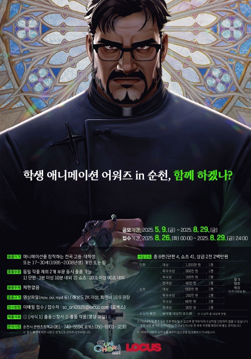로커스와 함께하는 ‘학생 애니메이션 어워즈’는 전국 고등학생, 대학생 또는 17세~30세(2008년~1995년생) 개인 또는 팀이면 누구나 참여 가능하다.
