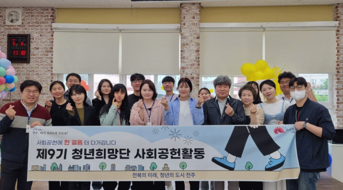 전주시는 제9기 전주시 청년희망단원 40명이 올해 청년정책 발굴 및 제안에 그치지 않고 자발적으로 힘을 모아 지역에 필요한 곳곳에 매월 사회공헌활동을 추진하고 있다고 12일 밝혔다.