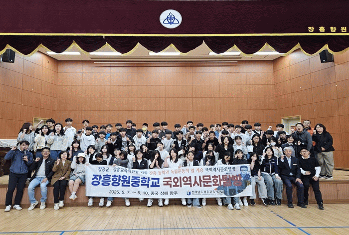김성 장흥군수는 “해외 역사탐방은 학생들이 선열들의 희생과 나라 사랑의 의미를 깊이 새기는 계기가 될 것”이라며, “앞으로 이어질 탐방도 안전하고 교육적인 성과를 거둘 수 있도록 아낌없이 지원하겠다”고 밝혔다.