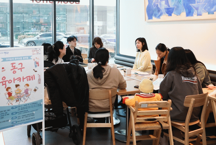 최근 개소한 우리동네 육아소통 플랫폼 동구 육아카페는 임산부는 물론 양육자(부모)를 위한 소통과 힐링 공간으로써의 역할을 톡톡히 해내고 있다. 매월 셋째 수요일 오전 10시 30분부터 1시간가량 1호점 카페꼼마 파랑새안과점과 매월 첫째 수요일 2호점 구립도서관 책정원에서 영·유아 부모들이 차를 마시면서 임신과 출산, 육아에 대한 정보를 공유하고 구의 다양한 사업들을 안내받고 참여해 볼 수 있는 소통 공간이 될 것으로 예상된다.