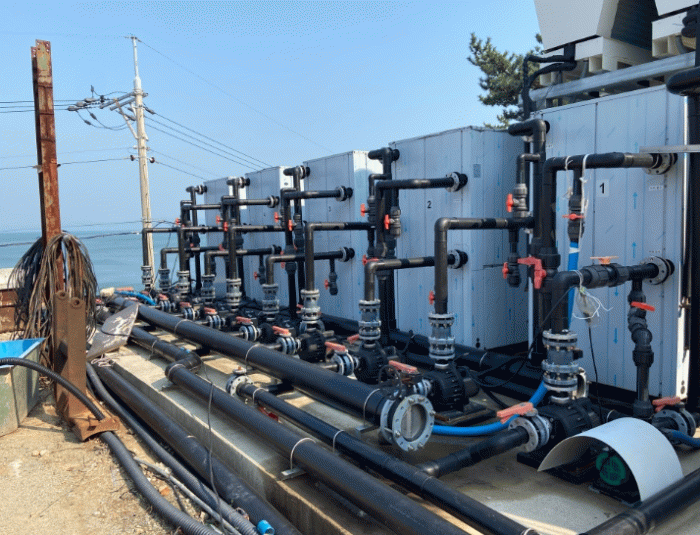 히트펌프는 화석연료를 사용하지 않고 바닷물의 잔열을 전기의 힘으로 모아 양식장 수온을 조절하는 장치로, 기존 기름보일러 대비 난방비를 최대 62%를 절감할 수 있다.