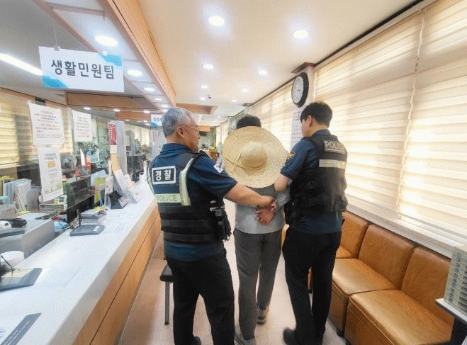 훈련 순서는 ▲흥분한 민원인에 대한 진정 유도·설득 시도 ▲위협적인 상황 발생 시 휴대용 보호장비를 이용한 증거 영상 촬영 ▲상황 악화 시 비상벨을 이용한 신속한 경찰 신고 ▲피해 공무원 보호·방문 민원인 안전한 장소로 대피 유도 ▲신고를 받고 출동한 경찰에게 악성 민원인 인계 순으로 일사불란하게 이뤄졌다.