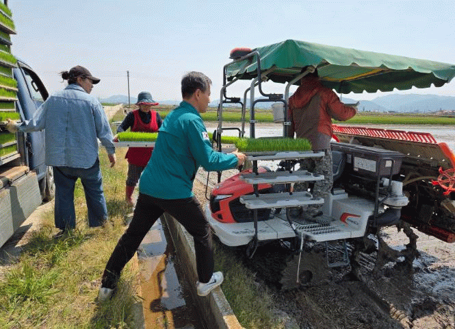 이날 모내기 품종은 극조생종벼 빠르미로 모내기 이후 80일 정도 생육기간을 거쳐 8월초 첫 수확을 할 예정이다.