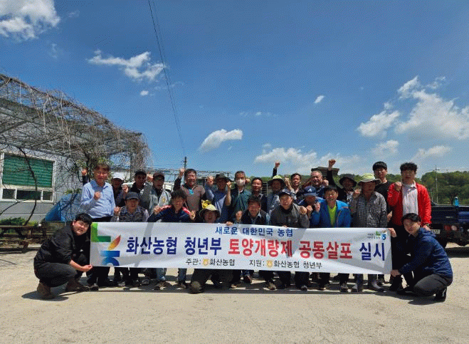 한 농가는 “토양개량제가 여러 장점이 많아 뿌리는 것이 좋지만 포대가 무겁다보니 장비가 없으면 살포할 엄두를 내지 못했다”며 “ 화산농협과 화산농협 청년부가 함께 공동 살포해주어 너무 고맙다”고 말했다.