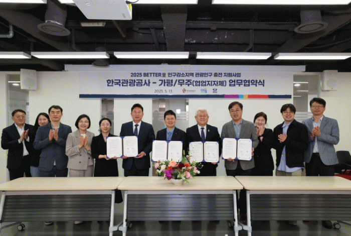 한국관광공사 서울센터에서 진행된 이날 협약식에는 서영충 한국관광공사 사장 직무대행과 황인홍 무주군수 등 양측 관계자 10여 명이 참석했다.