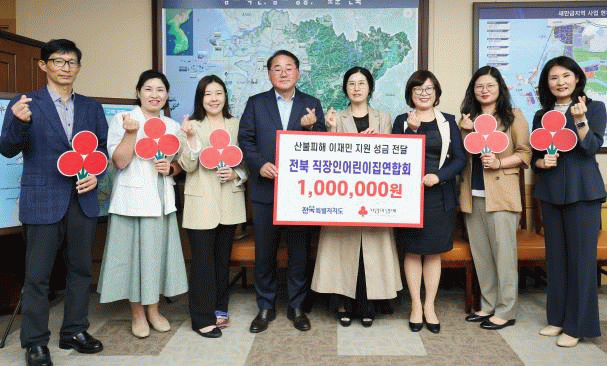 박수경 전북직장어린이집연합회장은 “산불로 큰 피해를 입은 이웃들에게 조금이나마 힘이 되고 싶다”며 “앞으로도 지역사회를 위한 나눔과 연대를 지속해 나가겠다”고 밝혔다.