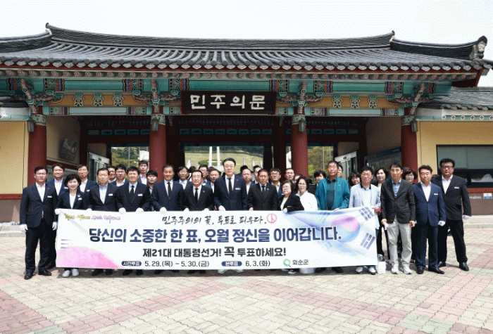 구 군수는 6월 3일 실시되는 제21대 대통령 선거를 앞두고“적극적인 투표권 행사야말로 곧 오월 민주 정신을 계승하는 자세이며, 대한민국 민주주의의 발전과 미래를 바꾸는 힘”이라고 공직자와 군민 모두 책임 있는 투표 참여를 독려했다.