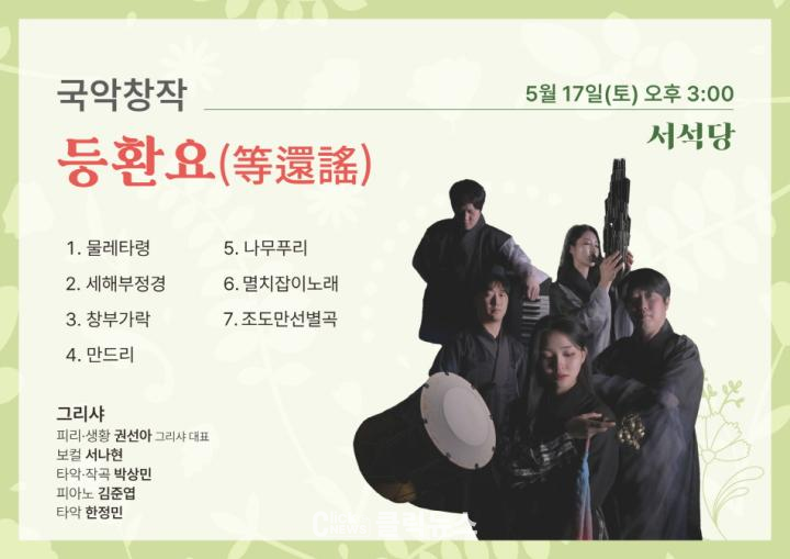 오후 3시 전통문화관 서석당에서 진행되는 ‘토요 상설공연’ 무대에서는 국악 노동요를 현대적으로 재해석한 음악공연 <등환요>가 펼쳐진다. 노동요는 단순한 노래가 아닌, 선창과 후창을 통해 선조들의 삶과 정서를 담아낸 민중의 음악으로, 고된 노동과 배고픔 속에서도 분노와 항의, 희망과 연대를 노래하며 이어온 소리다.