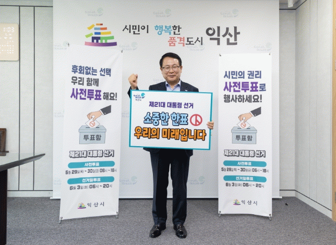 정 시장은 "투표는 시민권리를 행사하는 가장 평화롭고도 강력한 도구"라며 "익산의 미래를 시민 스스로 만들어가는 일에 꼭 함께해 주시기를 바란다"고 거듭 당부했다.