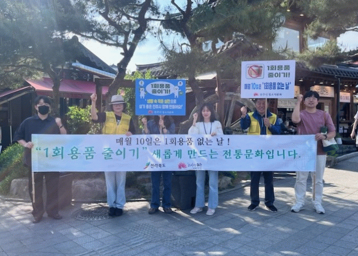 이날 시는 각종 지역축제와 행사 등으로 방문객이 늘어난 한옥마을 중심상가 일대에서 현수막과 표지판을 활용해 거리를 지나는 시민들에게 ‘생활 속 1회용품 줄이기’에 동참해 줄 것을 호소했다.