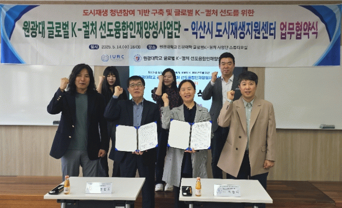 시는 14일 원광대학교 인문대학 회의실에서 원광대학교 글로벌 K-컬처 선도융합 인재양성사업단과 업무협약을 체결했다.