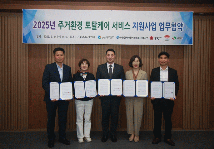 전북광역자활센터(센터장 백영규)는 14일 전북광역자활센터 회의실에서 2025년 주거환경 토탈케어 서비스 지원사업을 위해 서비스 제공 주체인 한국자활기업협회 전북지부(지부장 이창승)와 공모로 통해 선정된 남원시청(시장 최경식), 김제시청(시장 정성주), 임실군청(군수 심민) 3개 지자체와 협약을 맺었다.