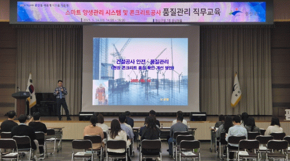 이번 교육은 스마트 양생관리 시스템 운영 계획 및 콘크리트 공사 표준시방서 개정 사항을 공유하기 위해 마련됐다.