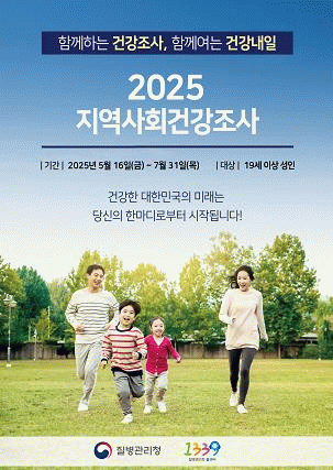 조사는 가구원의 동의 후 조사원이 직접 가정을 방문하여 1:1 면접조사를 통해 진행되며, 주요 내용은 흡연, 음주, 신체활동, 만성질환 관련 문항 등 총 19개 영역, 169개의 문항이다.