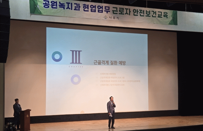안전 보건교육에 참석한 윤병태 나주시장은 “어려운 현장 환경에서도 나주시를 아름답게 변화시켜가는 여러분의 노고에 감사드리며, 모든 근로자가 안전하게 일할 수 있는 환경을 만드는데 최선을 다하겠다”고 밝혔다.