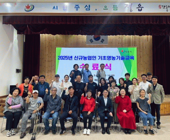 시 농업기술센터는 15일 제2청사 대강당에서 ‘2025년 상반기 신규농업인 기초영농기술교육’ 수료식을 갖고, 교육생 27명의 새로운 출발을 축하했다.