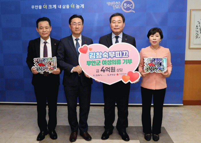이날 기탁식은 최성열 김창숙부띠끄 총괄이사를 비롯해 김산 군수, 전남사회복지공동모금회 김동극 처장, 무안군사회복지협의회 나민희 회장 등이 참석해 훈훈한 나눔의 뜻을 함께했다.