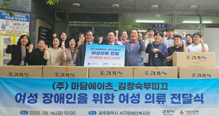 최성열 총괄이사는 “김창숙부띠끄는 50년간 옷깃 하나, 바느질 한 땀마다 사람들의 삶과 꿈, 아름다움을 담아낸 의류브랜드”라며 “사람 중심의 ‘착한도시 서구’의 가치에 공감해 이번 나눔을 실천하게 됐다”고 후원의 뜻을 전했다.