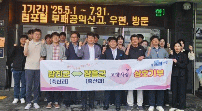 장흥군 축산과 역시 “작은 나눔이지만 강진·장흥 발전에 큰 울림이 되길 바라며, 앞으로도 다양한 방식으로 지역 상생에 힘을 보태겠다”고 힘을 보탰다.
