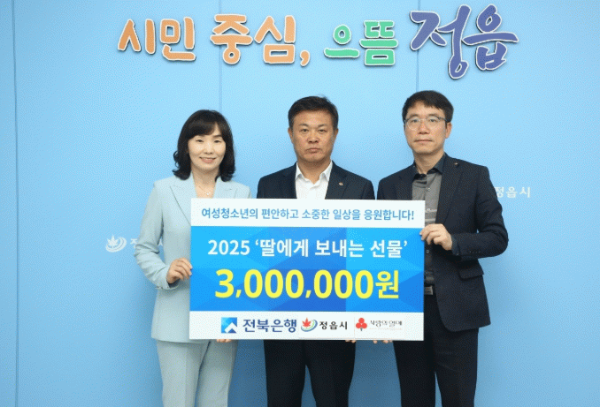 전북은행 정읍시청지점은 16일, 여성을 위한 위생용품 100박스(300만원 상당)를 정읍시청에 기탁하며 지역사회에 온기를 더했다.