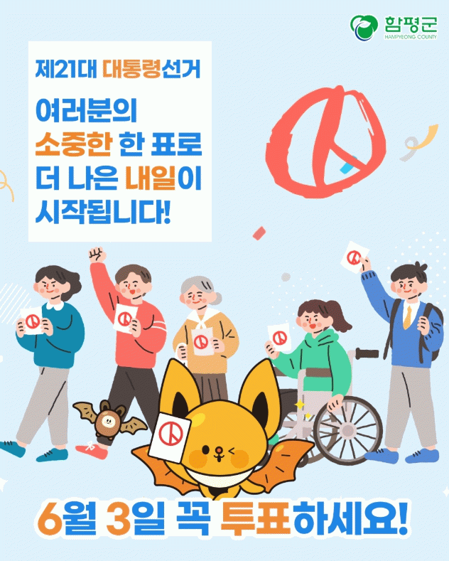 군청과 각 읍·면사무소의 유선전화를 통해 연결되는 모든 통화에는 “6월 3일은 제21대 대통령 선거 투표일입니다. 함평군은 군민들이 불편없이 투표할 수 있도록 최선을 다해 지원하겠습니다. 5월 29일·30일 사전투표와 6월 3일 본투표에 꼭 참여해주세요. 투표는 힘이고 민주주의의 꽃입니다!”라는 메시지가 안내된다.