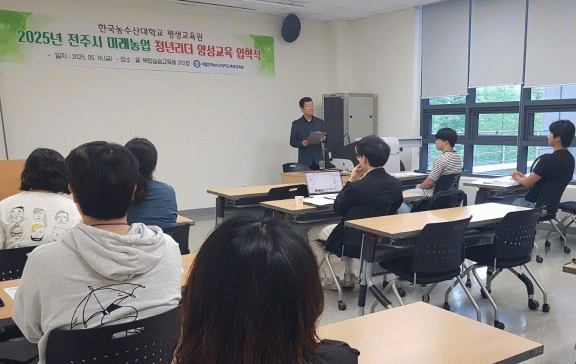 전주시 농업기술센터(소장 강세권)는 16일부터 오는 8월 22일까지 3개월 동안 매주 금요일 총 13회에 걸쳐 전주지역 청년 농업인의 안정적 영농 정착과 농업기술 역량 향상을 돕기 위한 ‘2025년 미래농업 청년리더 양성교육’ 과정을 운영한다.