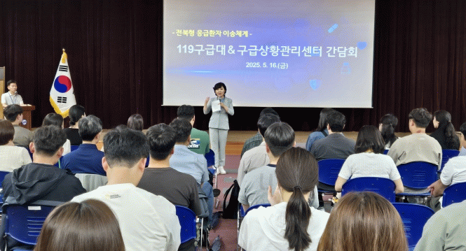 이날 간담회는 현장 구급대원의 실제 경험과 목소리를 바탕으로 응급의료 시스템을 개선하기 위해 마련된 자리로, 소방본부 구급상황관리센터장 등 본부 관계자 5명을 포함해 도내 15개 소방서 구급팀장, 담당자, 현장 구급대원 등 총 80여 명이 참석했다.