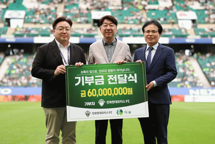 특히 이날 기부금 전달 행사에는 우범기 전주시장과 이도현 전북현대모터스FC 단장, 정명운 (사)더 숲 대표뿐 아니라 많은 시민과 축구팬이 참여해 의미를 더했다.