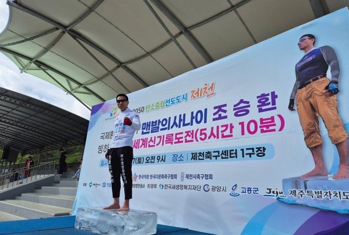한편, 조승환 씨는 지구온난화로 병들어 가는 지구를 표현하는 극한 퍼포먼스를 통해 자신의 기록을 5분씩 늘려가며 세계 투어를 이어가고 있다. 오는 5월 31일에는 부산에서 열리는 넷제로(Net Zero) 행사에서 53번째 도전에 나설 예정이다.