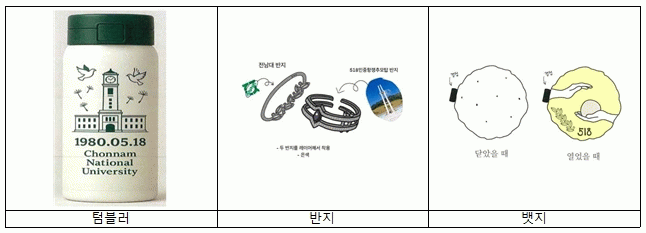 최우수상은 5·18 민주화운동과 전남대학교를 유기적으로 연결하며 홍보성과 실용성을 겸비한 친환경 텀블러 디자인이 선정됐다. 지속 가능한 소재를 활용해 일상 속에서 민주화운동의 정신을 기억할 수 있도록 기획된 점이 높은 평가를 받았다.