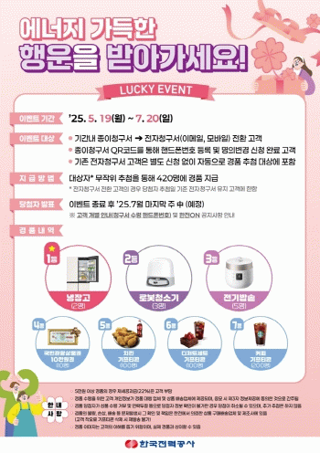 이번 이벤트는 기존에 우편이나 인편으로 종이 청구서를 받던 고객이 전자 청구서로 신규 전환하거나, 종이 청구서 QR코드를 통해 사용자명 및 휴대전화번호 등을 최신 정보로 업데이트한 경우 자동으로 응모되며, 기존 전자 청구서 전환고객도 이벤트 대상에 포함된다. 추첨을 통해 총 420명에게 냉장고, 로봇청소기, 전기밥솥, 국민관광상품권 등 다양한 경품이 제공된다.