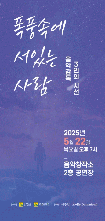 전라남도와 전남문화재단의 후원 아래, 지역 작곡가 이주엽과 전남음악창작소가 손잡고 선보이는 이번 공연은 단순한 음악 감상을 넘어, 삶의 예상치 못한 위기와 그 속에서 길어 올리는 내면의 고요, 마침내 찾아오는 회복과 깊은 성찰의 순간들을 다채로운 음악 언어로 섬세하게 그려낼 예정이다.