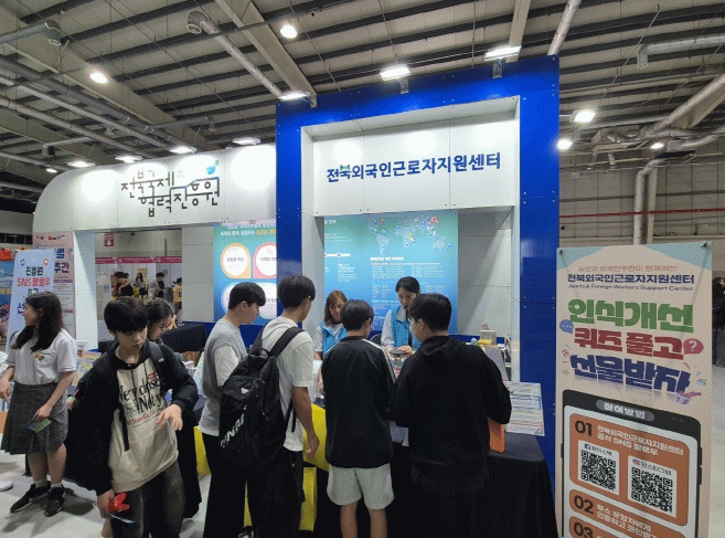 지난 15, 16일 이틀간 군산새만금컨벤션센터에서 열린'2025 전북청소년 한마당 축제'행사장에도 홍보부스를 마련해 청소년들을 대상으로 외국인인식개선을 위한 OX 퀴즈를 통해 청소년들의 이해를 높였다.