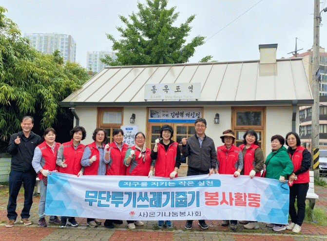 이날 봉사에는 온기나눔봉사회 회원과 용당1동 행정복지센터 직원 등 20여 명이 참여해, 궂은 날씨에도 불구하고 공원 내 쓰레기 수거, 제초 작업 등을 진행하며 쾌적한 동네 환경 조성에 힘을 모았다.