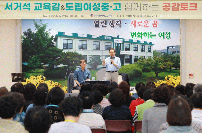 서거석 교육감은 이날 전북도립여성중고등학교를 방문해 150여 명의 학생들이 참석한 가운데 열린 ‘교육감과 함께하는 공감토크’에서 “배움을 향한 열정으로 가득한 여러분이 존경스럽다”며 이같이 밝혔다.