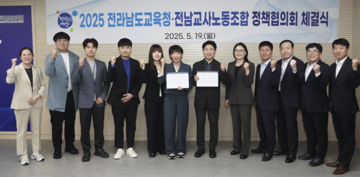 김대중 교육감은 “노·사간 정책협의 체결은 단순한 약속을 넘어, 교사와 교육청이 함께 만드는 전남교육의 새로운 전환점”이라며 “현장의 의견이 정책으로 이어지는 선순환 구조를 통해 학생 중심, 교사 행복의 교육이 실현되기를 기대한다.”고 말했다.