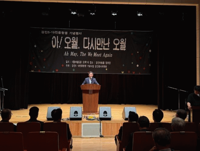 전재영 복지환경국장은 추념사를 통해 “5·18 민주화운동은 단순한 과거의 사건이 아니라, 오늘을 살아가는 우리 모두에게 자유와 정의, 그리고 사람답게 사는 세상을 향한 물음을 던지는 살아 있는 역사입니다”라며 “강진군은 민주·인권·평화라는 5·18 정신을 일상의 삶 속에서 실천하며, 다음 세대에 올곧게 계승될 수 있도록 지속적인 노력을 기울이겠다”고 강조했다.