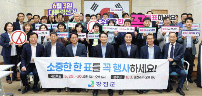 강진군에서는 이번 선거가 나라의 미래를 결정짓는 중요한 선거이니만큼 군민의 소중한 한 표가 반드시 행사되도록 절차 안내와 홍보 및 붐 조성에 적극 노력하고 있다.