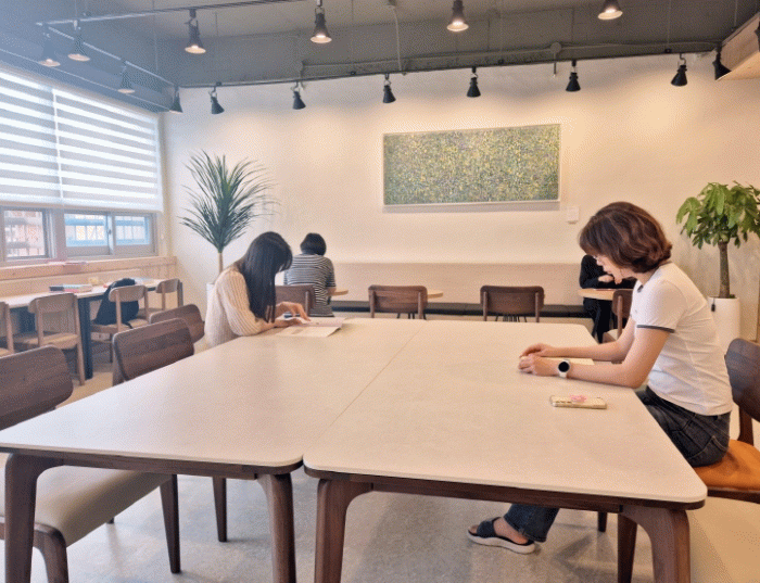 내부 공간은 이용자들의 다양한 취향을 고려해 세심하게 구성됐다. 창가와 벽면에는 아늑한 1인용 탁자를 배치해 혼자만의 조용한 시간을 원하는 이용객들을 위한 개별적인 공간을 마련했다.