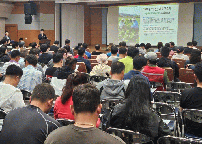 이번 교육은 외국인 계절근로자 제도의 안정적인 정착과 근로자의 인권 보호, 노동 관계법 준수를 위해 마련된 외국인 계절근로자 프로그램 필수교육으로 고용농가 250여명이 참석했다.
