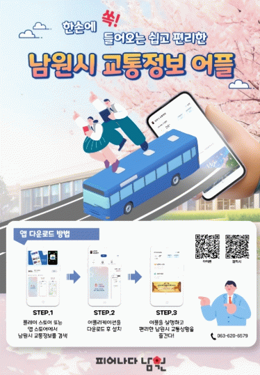또한, 각종 시정 소식지에도 어플리케이션 설치용 QR코드를 삽입해 시민들이 손쉽게 설치할 수 있도록 지원할 방침이다. 남원시 관계자는 “이러한 지속적인 홍보를 통해 어플리케이션 사용이 점차 확대되고, 시민들의 대중교통 이용 편의도 크게 향상될 것으로 기대된다.”라고 전했다.