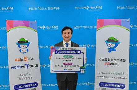 정기명 시장은 20일 개인 누리 소통망(SNS)을 통해 “투표는 힘이고, 민주주의의 꽃입니다! 제21대 대통령선거에 소중한 한 표, 꼭 투표합시다”라며 시민들의 투표 참여를 호소했다.