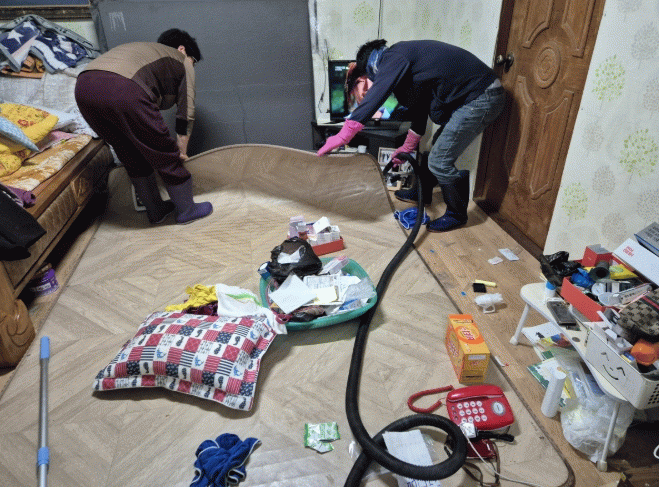 대상자는 몇 년 전 남편과 사별한 후, 불필요한 물건을 버리지 못해 쌓아둔 탓에 생활공간이 각종 쓰레기로 가득 차 화재 및 위생 등 위험 수준에 이르렀고, 우울감과 불안감으로 외부와의 단절도 심화된 상태였다.