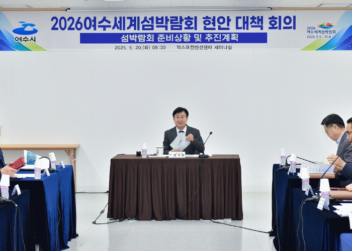 이번 회의는 정기명 시장을 비롯해 최정기 부시장, 김종기 조직위 사무총장, 간부 공무원 등 30여 명이 참석한 가운데 섬박람회 준비 상황과 추진계획에 대한 보고, 토론 순으로 진행됐다.