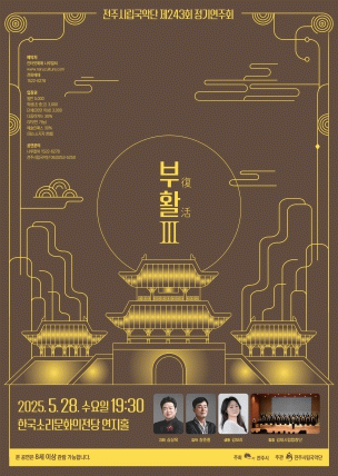 ‘부활’ 시리즈는 찬란했던 전주의 역사를 바탕으로 다양한 프로그램을 선보이는 무대로, 시립국악단은 이번 공연에서 국악 관현악과 무용, 합창이 어우러지는 특별한 무대를 선보일 예정이다.