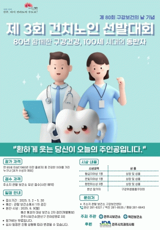 대회에 참여를 원하는 노인은 오는 30일까지 전주시보건소 구강보건센터 또는 덕진보건소 구강보건센터로 전화 신청하면 된다.