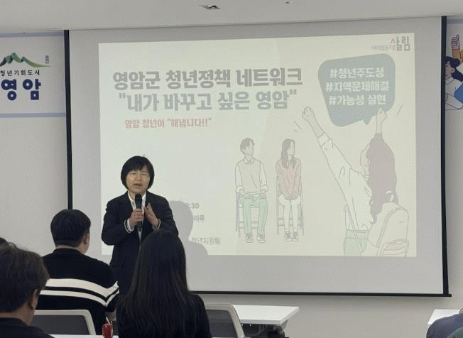 김선미 영암군 인구청년과장은 “청년들이 자신의 지역을 바꾸기 위해 이 자리에 모였다는 사실만으로도 뜻깊은 자리다. 청년활동이 청년의 삶과 지역의 변화로 이어질 수 있도록 지지하겠다”고 전했다.